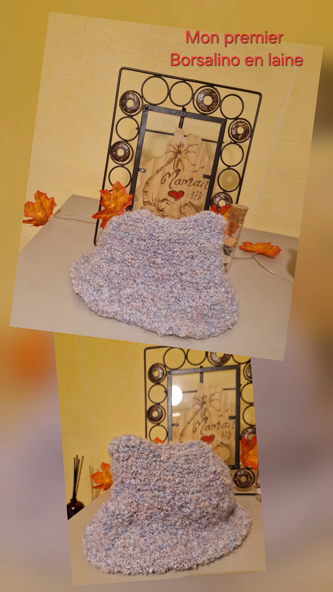 J’ai tout de même poursuivi cette activité. Il y a quelques jours, j’ai terminé mon premier borsalino en laine. Une pièce tricotée que je suis fière d’avoir finalisée.