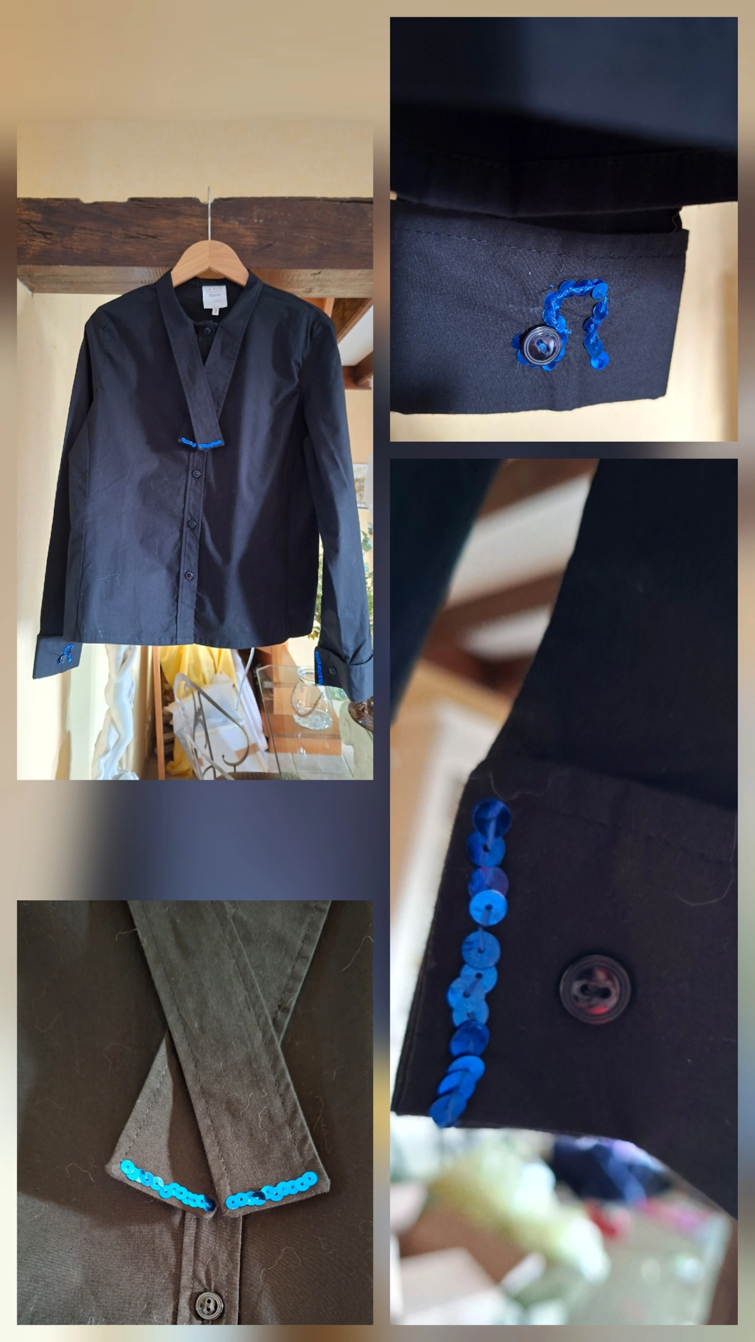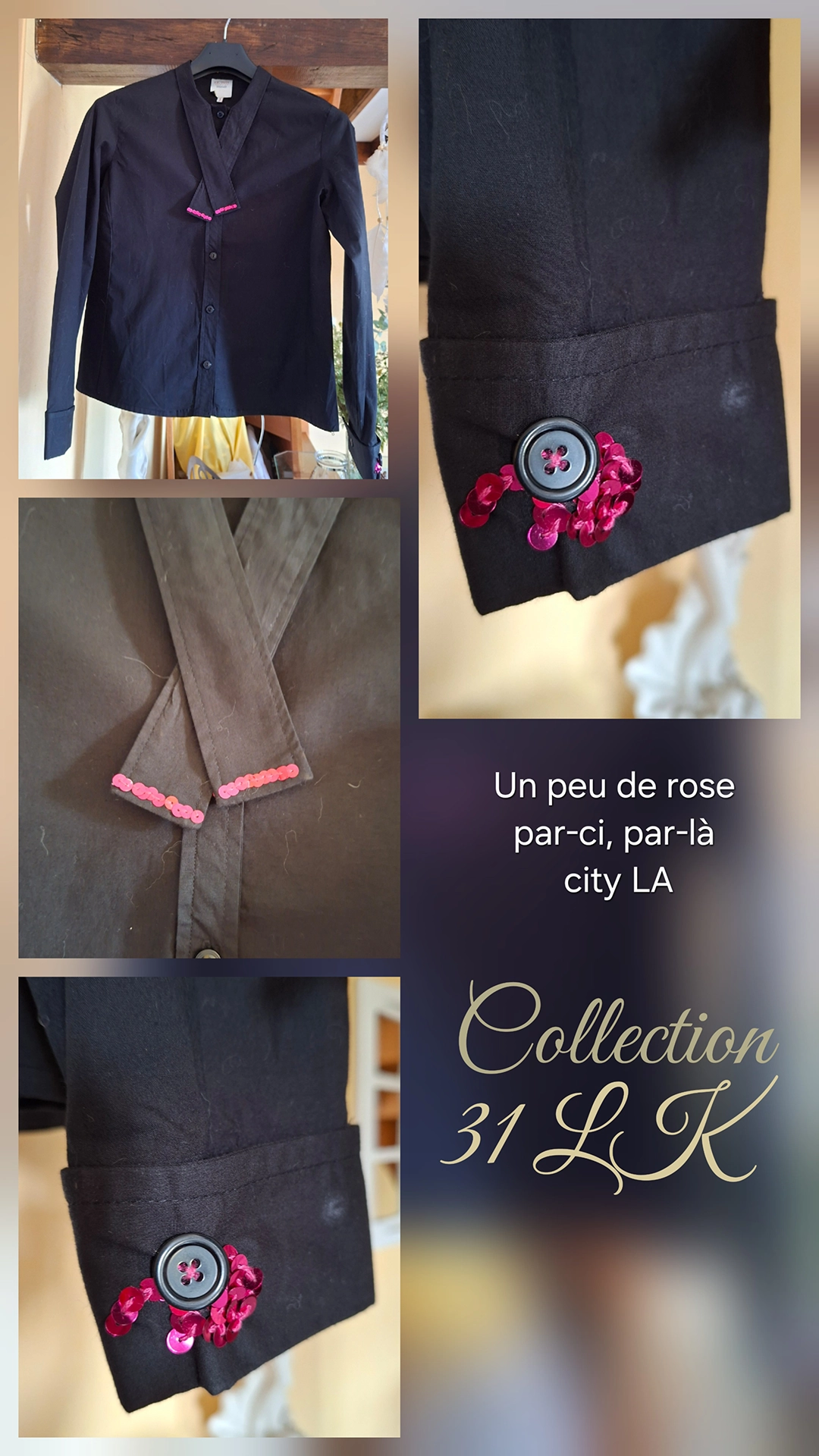J'ai mis en vente sur Le Bon Coin les chemises qu'il me restait, mais elles ne se sont pas vendues. En février 2026, j'ai ressorti les chemises des malles et j'ai eu envie de les customiser. Chacune a sa personnalité, chaque fille est unique dans sa féminité.