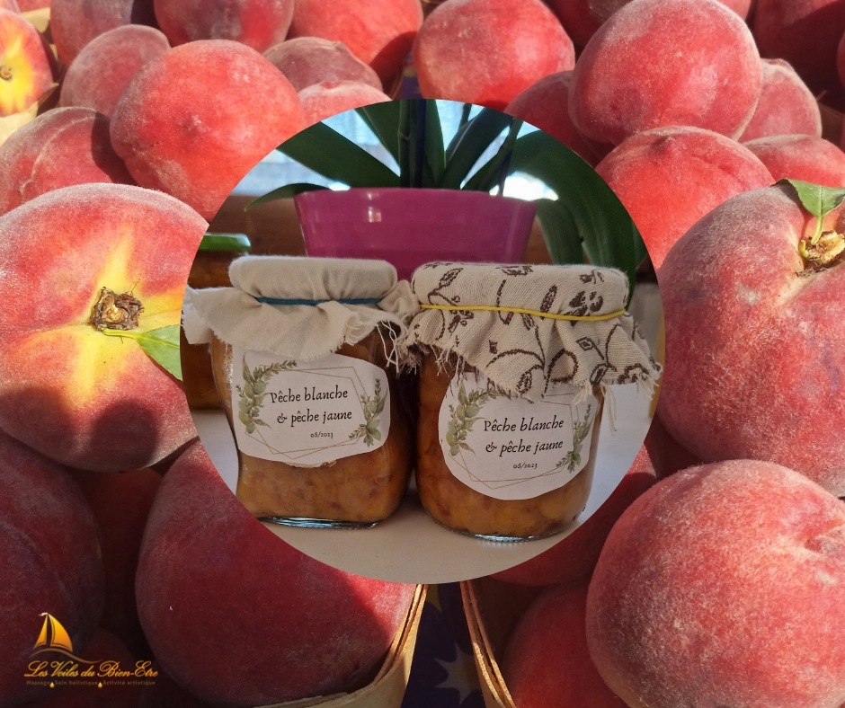 La pêche est l’un des fruits par excellence de mon enfance. Ce souvenir d’été de dérober, sans se faire attraper, quelques fruits bien juteux sur l’arbre, avec mes cousines, reste gravé dans ma mémoire.