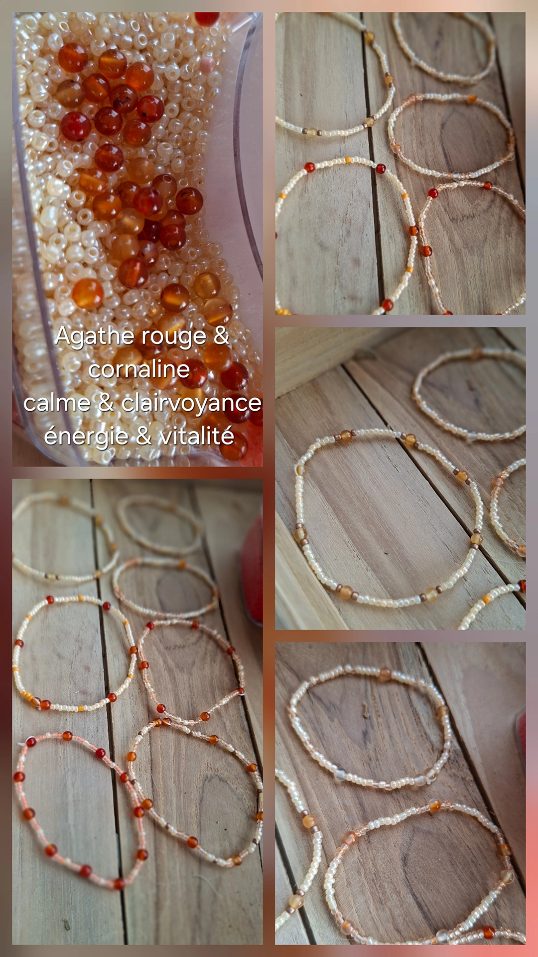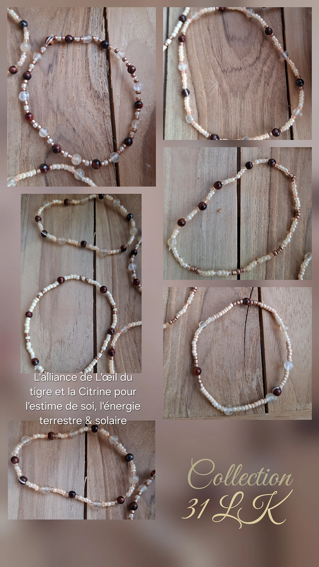 D'octobre à décembre, entre les marchés de Noël à préparer et pour les cadeaux du jeu de l'enveloppe gagnante que j'ai créé, j'ai à nouveau été inspiré. De nouveaux modèles à vous proposer, entre citrine et bois, œil de tigre et du rouge pour l'ancrage.